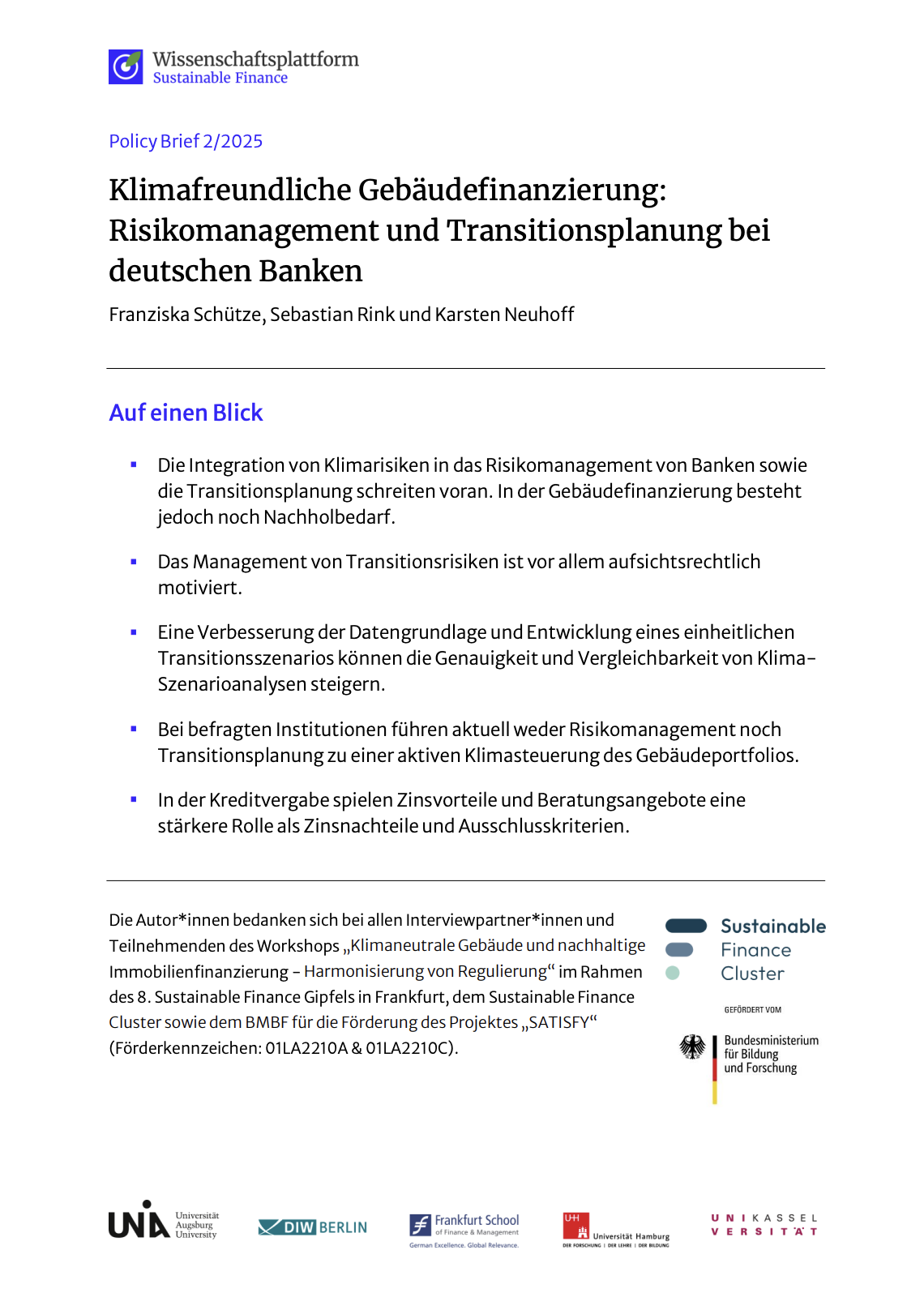- SFCP-Autor:innen: Prof. Dr. Alexander Bassen, Prof. Dr. Timo Busch, Prof. Dr. Kerstin Lopatta, Hendrik Brosche, René Wagner, Svenja Scherer, Henrik Ohlsen, Lisa Enders, Patrick Weltin